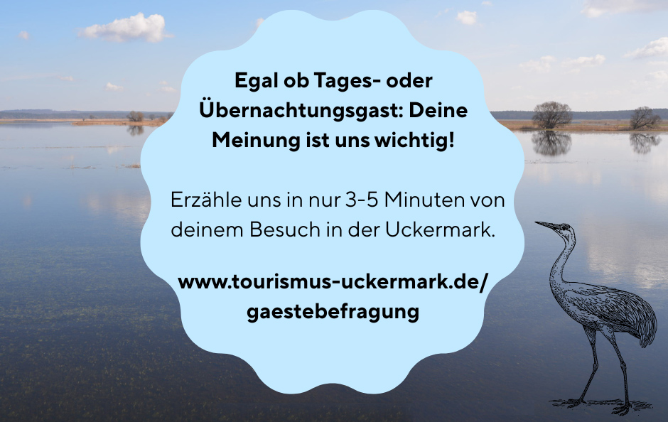 Die TMU Tourismus Marketing Uckermark GmbH führt online eine ganzjährige Gästebefragung für die Reiseregion Uckermark unter Tages- und Übernachtungsgästen durch.